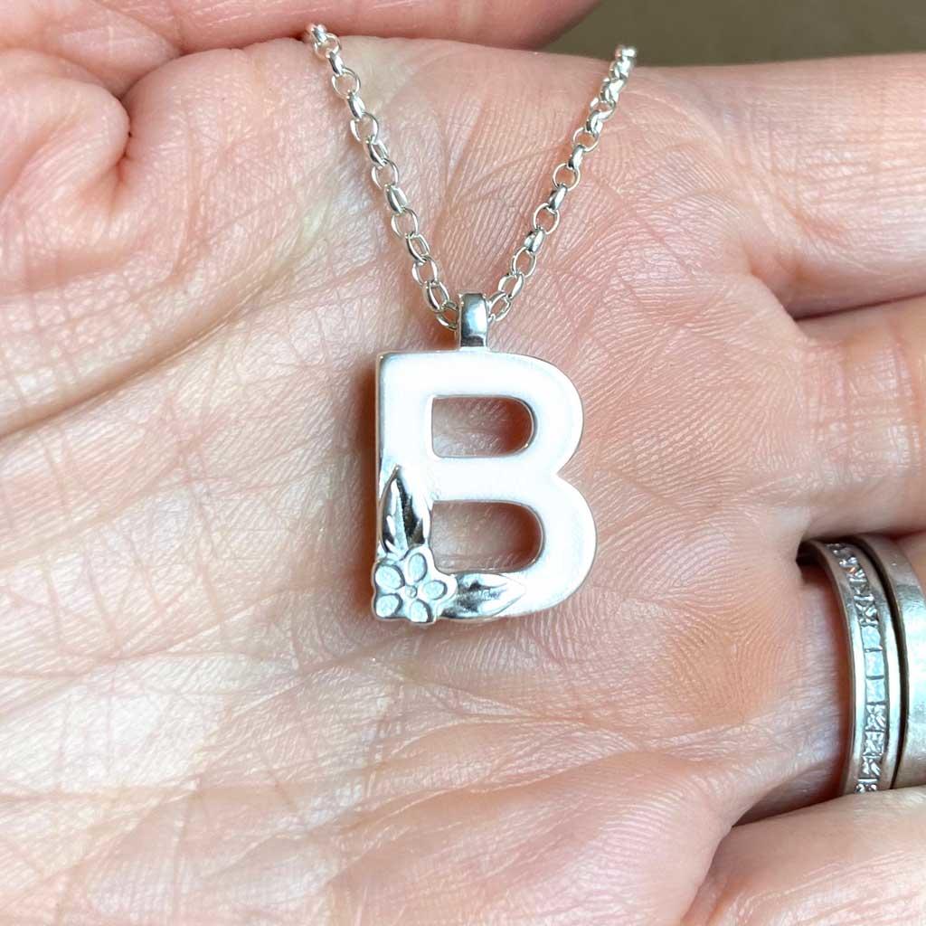 Decorated with a floral appliqué design, inspired by the Welsh countryside, this silver alphabet necklace makes a special gift for any fashionista in your life.