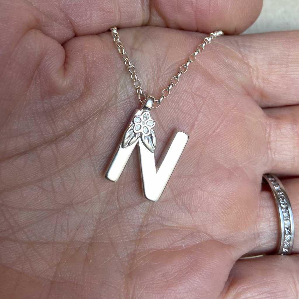 Silver Initial Pendant - Letter N by Elin Mair