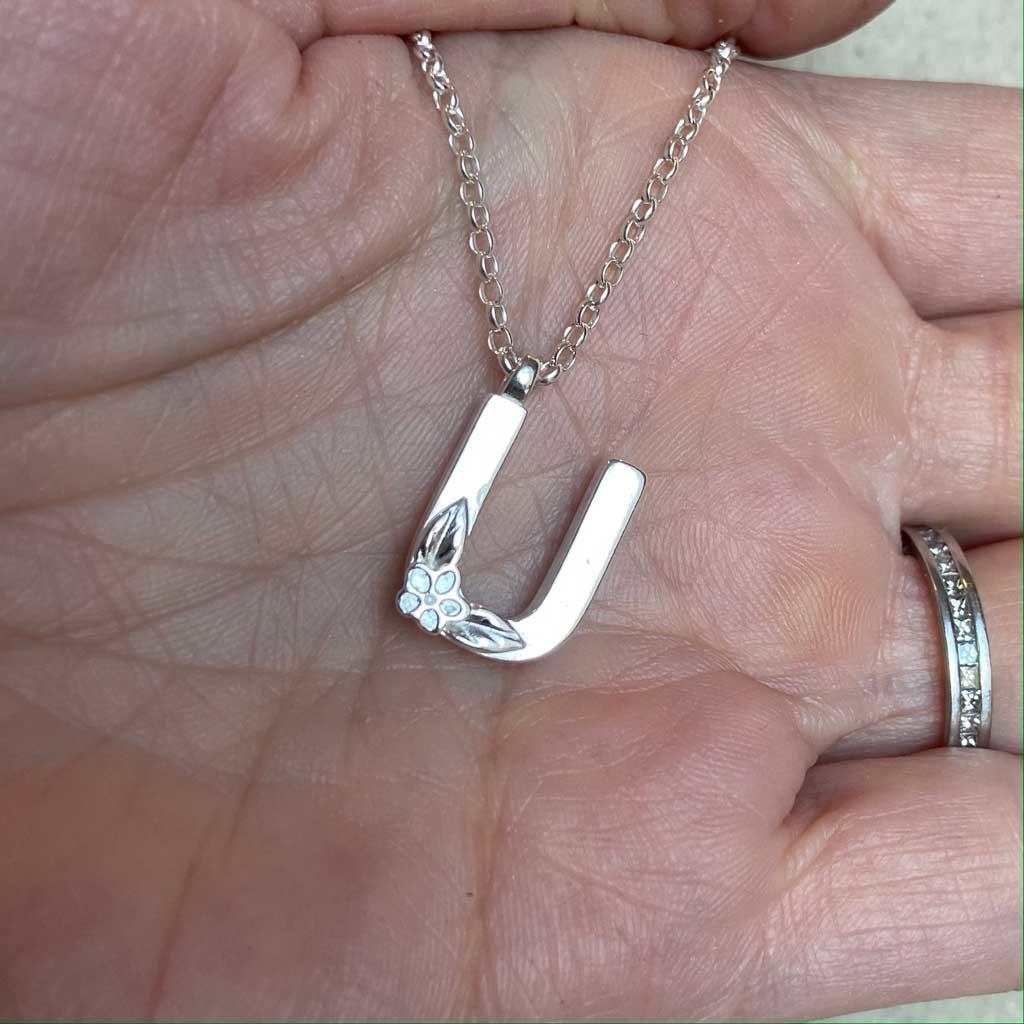 Silver Initial Pendant - Letter U by Elin Mair